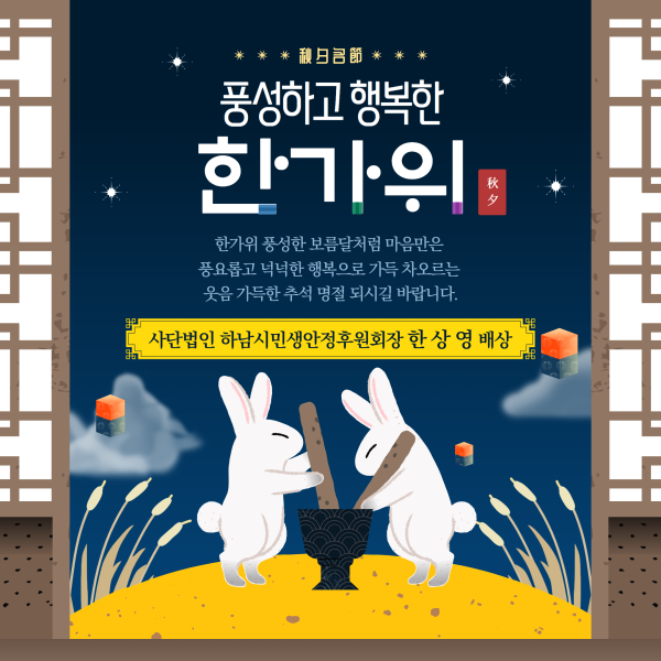추석 감사카드 게시글 작성정보 작성자 하남시민생안정후원회 작성일 24-09-12 18:49 조회수 294 댓글수 0 목록 게시글 본문 넉넉하고 풍성한 한가위 되세요!! 첨부파일 1개 추석명절카드법인.png (652.1K) 0회 다운로드 첨부일시 : 2024-09-12 18:49:24 이전글 10월의 감사편지 24-10-14 다음글 9월의 감사편지 24-09-02 댓글 0 등록된 댓글이 없습니다. 목록