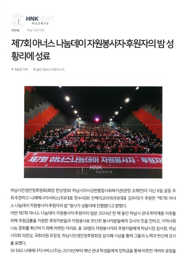 제7회 아너스나눔데이 게시글 작성정보 작성자 하남시민생안정후원회 작성일 24-12-09 15:58 조회수 497 댓글수 0 목록 게시글 본문 제7회 아너스나눔데이http://www.hakyungnews.co.kr/news/articleView.html?idxno=4927 첨부파일 2개 아너스보도.jpg (400.8K) 0회 다운로드 첨부일시 : 2024-12-09 15:58:08 아너스보도2.jpg (338.3K) 0회 다운로드 첨부일시 : 2024-12-09 15:58:08 관련링크 1개 http://www.hakyungnews.co.kr/news/articleView.html?idxno=4927 2회 연결 이전글 하남시기업인협의회, 하남시민생안정후원회에 후원금 300만원 전달 24-12-23 다음글 오형제손짜장 하남점, 외식상품권 전달 24-12-09 댓글 0 등록된 댓글이 없습니다. 목록